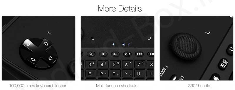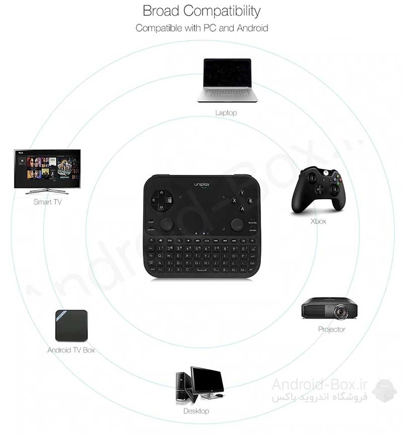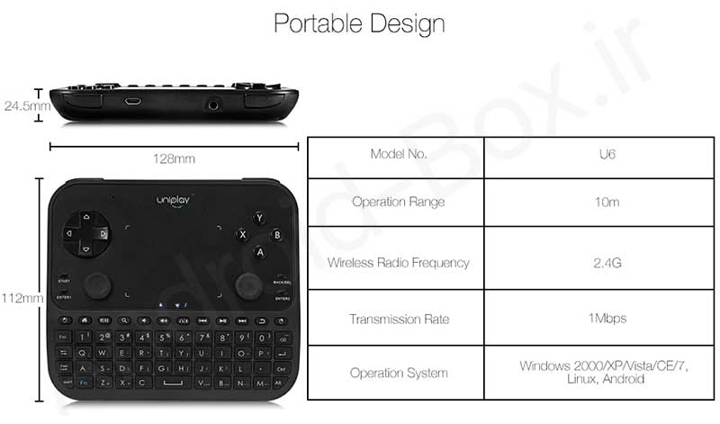 | سایر | پشتیبانی از عملکرد ایرماوس, تاچپد دقیق و قابلیت استفاده برای اندروید باکس, تلویزیون هوشمند و کامپیوتر |