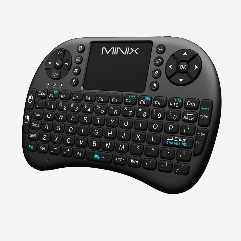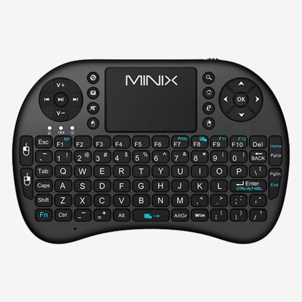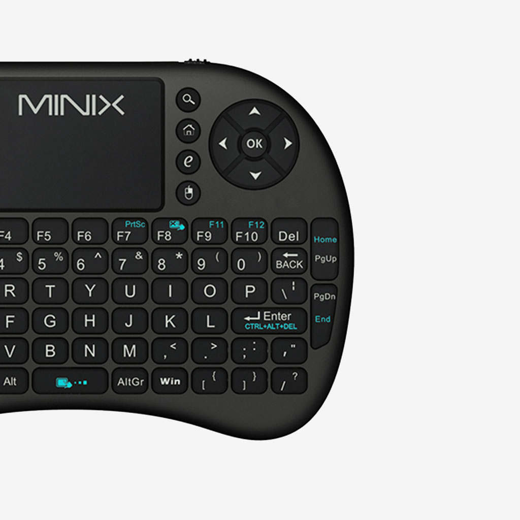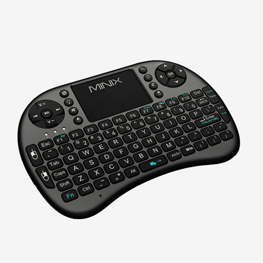 MINIX Neo K1 مجهز به صفحهکلید کامل QWERTY است که تمامی کلیدهای پرکاربرد مانند Tab، Esc، Ctrl، Shift و … را شامل میشود و تایپ راحتی را فراهم میکند.