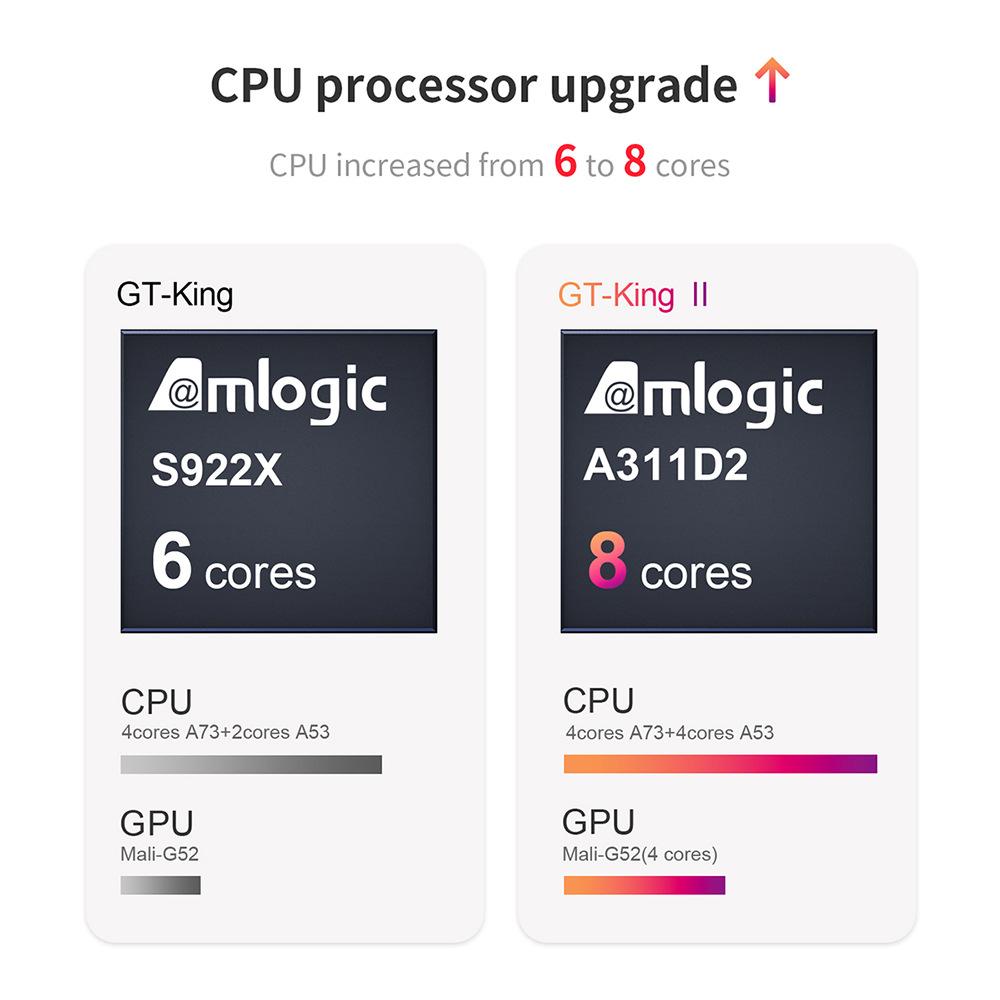 Amlogic A311D2 SoC is an octa-core processor with 4x Arm Cortex-A73 cores @ up to 2.2 GHz and 4x Cortex A53 cores @up to 2.0 GHz
