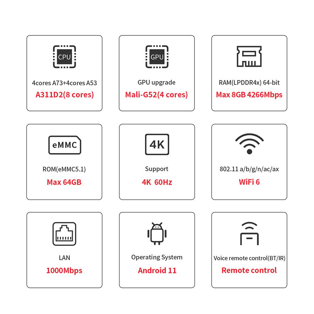 اندروید باکس Beelink GT-King II نسل دوم با بهره‌گیری از پردازنده قدرتمند Amlogic A311D2، رم 8 گیگابایتی DDR4 و سیستم عامل اندروید 11، یک گزینه ایده‌آل برای اجرای بازی‌های اندرویدی و استریم محتوای 4K و حتی 8K است. پشتیبانی از وای‌فای 6، بلوتوث 5.0 و درگاه‌های متنوع اتصال، این دستگاه را به یک مرکز چندرسانه‌ای کامل تبدیل می‌کند.