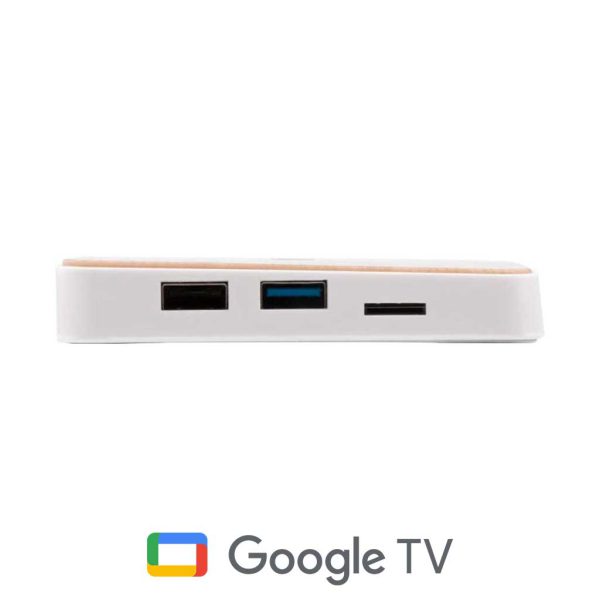 از نظر اتصالات، این مدل با وایفای دو بانده 2.4G/5G با استاندارد Wi-Fi 6 (ax)، بلوتوث 5.0، پورت شبکه گیگابیتی RJ45 و درگاههای USB 2.0، USB 3.0، Micro SD و AV عملکردی کامل و کاربردی ارائه میدهد. همچنین پشتیبانی از کنترل صوتی (Voice Control)، رابط کاربری گوگل تیوی و دسترسی مستقیم به فروشگاه Google Play، آن را به یکی از کاملترین اندروید باکسهای خانگی برای پخش محتوای آنلاین، اجرای بازیها و استفاده از سرویسهای استریم مانند YouTube و Netflix تبدیل کرده است.